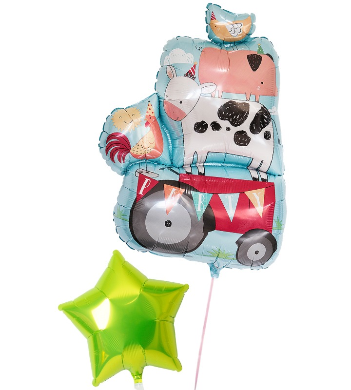 動物たちとライムグリーンスター【お祝いやパーティーのバルーン電報・装飾】