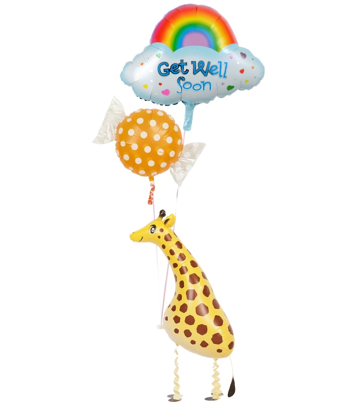 雲&レインボーとオレンジキャンディー、きりん【お見舞いのバルーン電報】