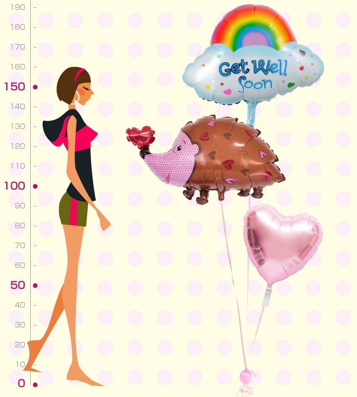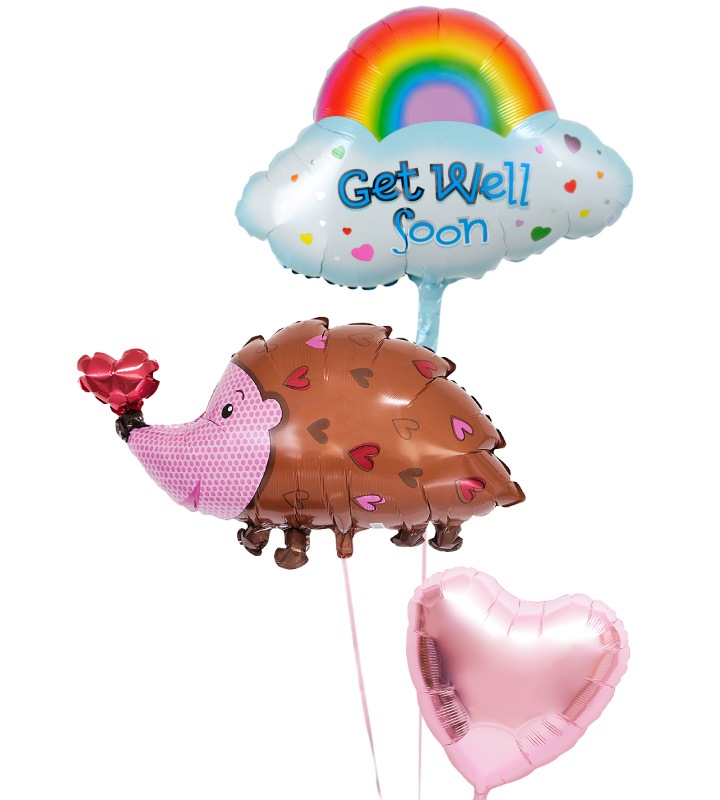 雲&レインボーとハートのハリネズミ、ピンクハート【お見舞いのバルーン電報】