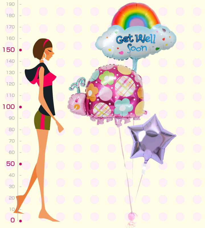 雲&レインボーとレディバグ、ブルードット【お見舞いのバルーン電報】