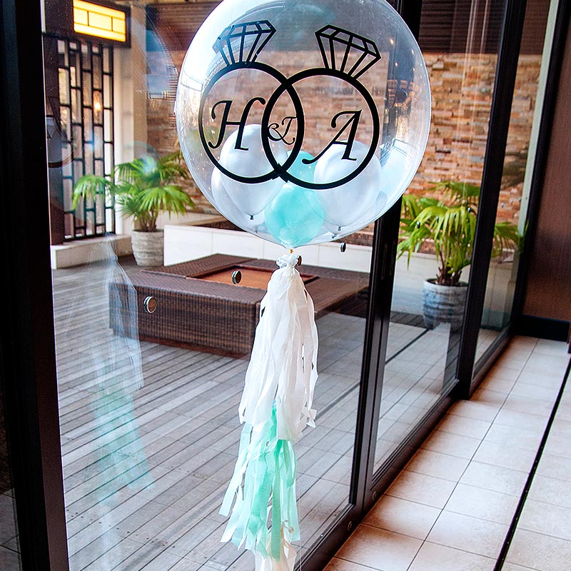インサイダーバルーン(名入れ) T555 シルバー×ミント【フリンジバルーン 結婚式・誕生日・イベント】