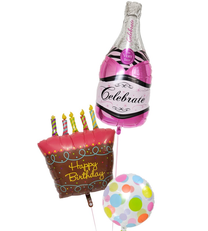 キラキラシャンパンとバースデーケーキとほんわかドット【誕生日のバルーン電報】