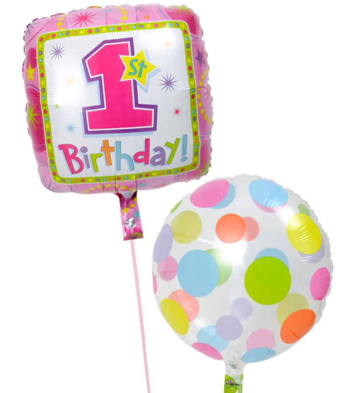 ほんわかドットのファーストバースデー【1才の誕生日のバルーン電報・女の子】