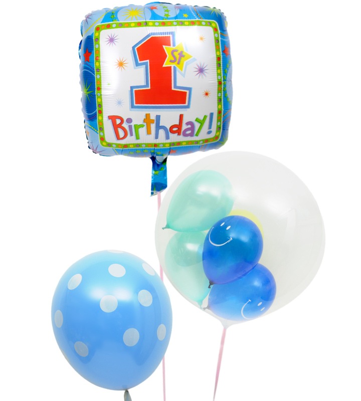 ぷちスマイルとブルードットのファーストバースデー【1才の誕生日のバルーン電報・男の子】