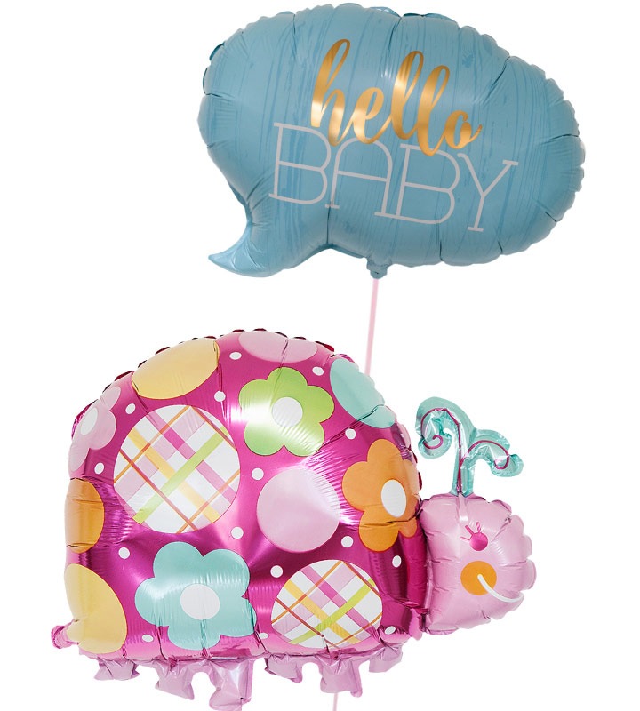 ハローベイビー(ブルー)とレディバグ【出産祝いのバルーン電報 男の子】