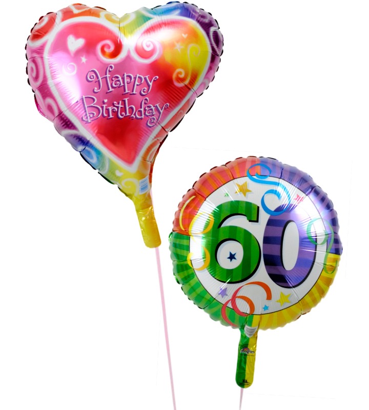 ハートのバースデーと60才バルーン【還暦祝いのバルーン電報】